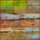 | One glossy ibis feeding hungrily,plum headed finches 6of them